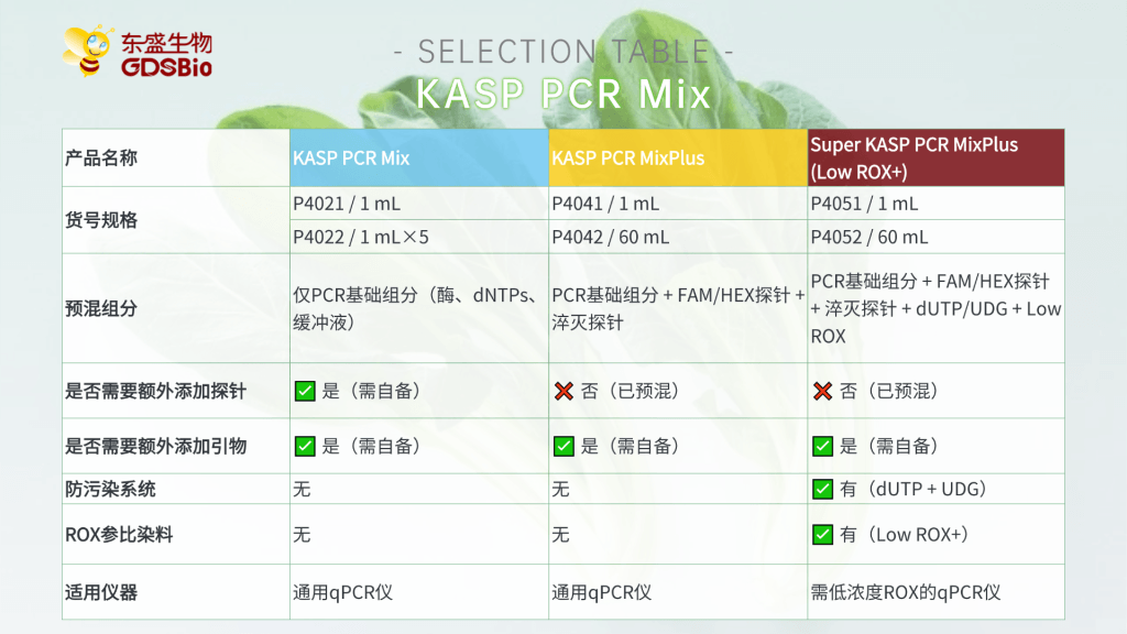 KASP(Kompetitive Allele-Specific PCR,竞争性等位基因特异性 PCR)是一种用于基因分型的技术,基于等位基因特异性PCR。它使用一种独特的竞争性PCR机制,能够检测特定位点的单核苷酸多态性(SNP)和插入/缺失(InDels),具有通量高、成本低和可操作性强等优点,在农作物性状遗传和改良研究等领域具有广泛的应用。